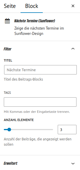 Auch in diesem Block kannst du die Ansicht der nächsten Termine steuern.